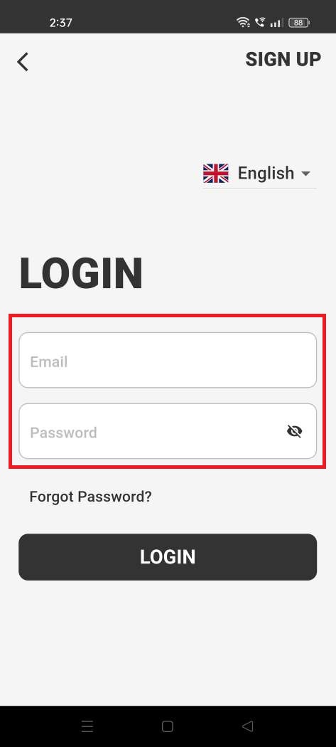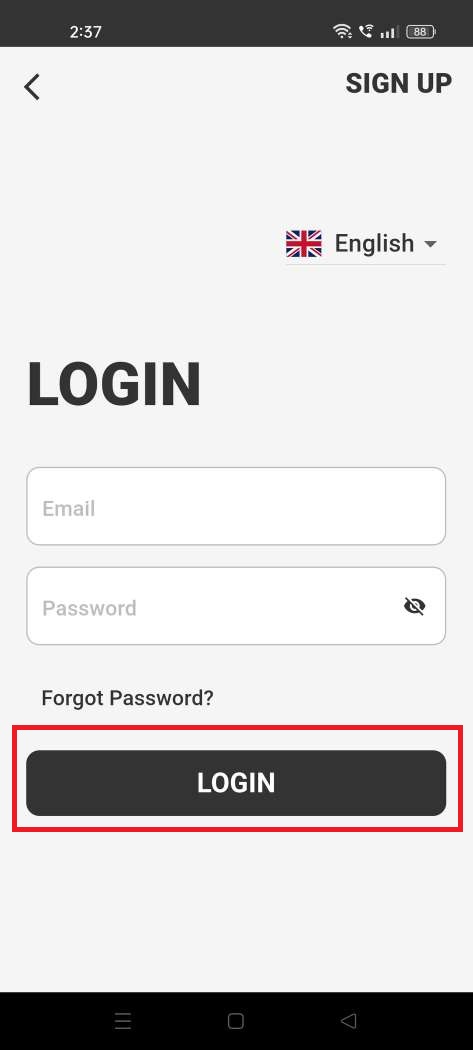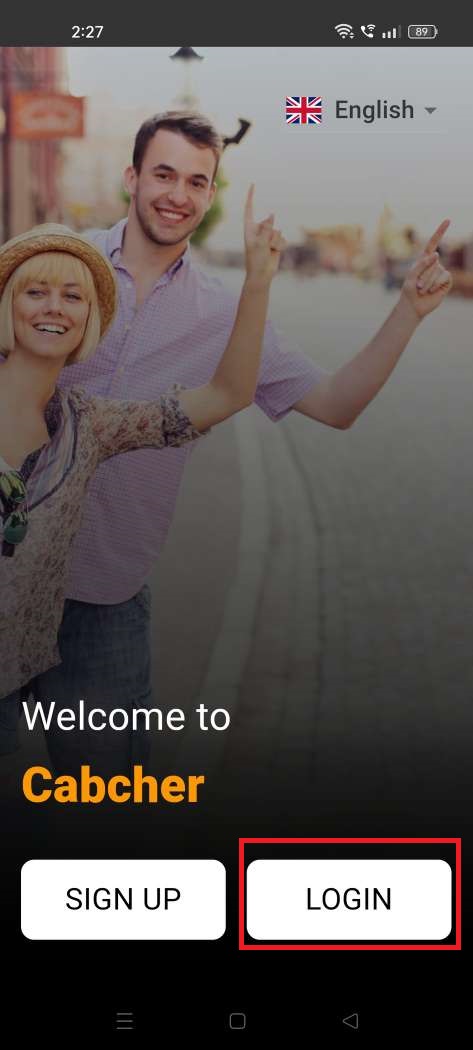 - Open the Cabcher app on your device and select the “LOGIN” option from the welcome screen.